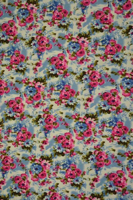 BLÅ OG PINK BOMULD MED BLOMSTERPRINT OG STRÆK