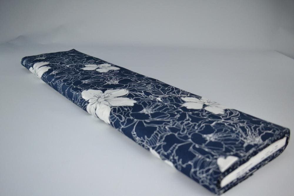 BLÅ BOMULDSPOPLIN MED HVID BLOMSTERPRINT