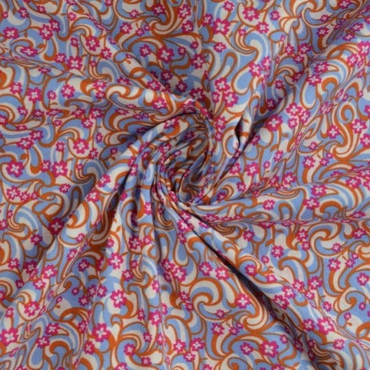 BOMULDSPOPLIN M. RETRO BLOMSTER I LIVLIGE FARVER