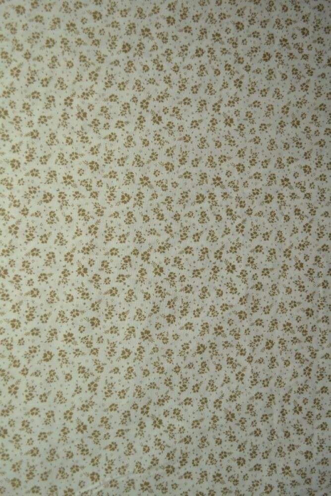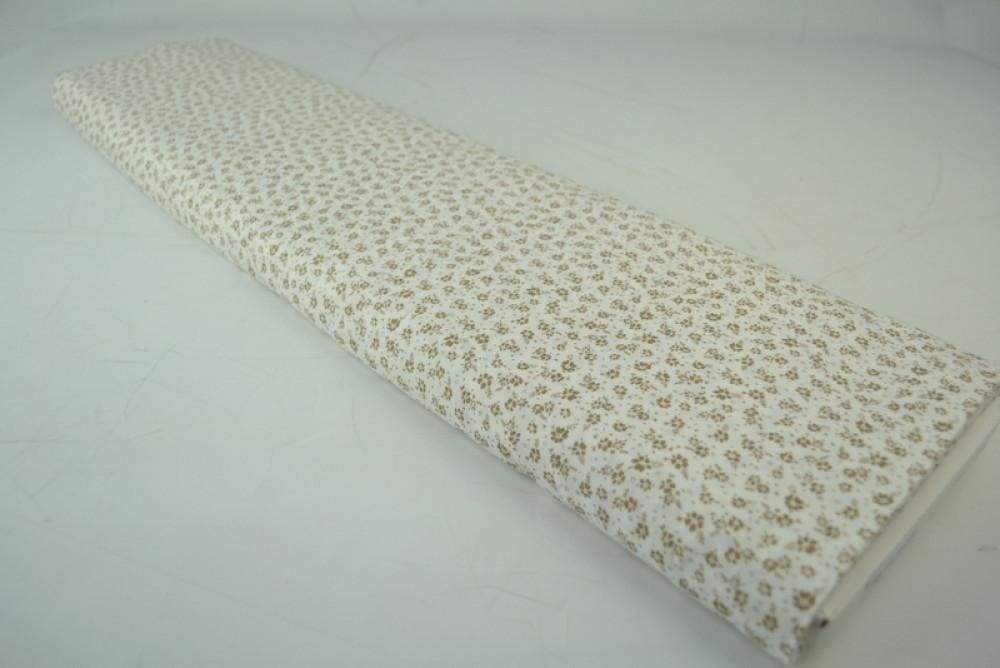 HVID BOMULDSPOPLIN MED SMÅ BEIGE BLOMSTER