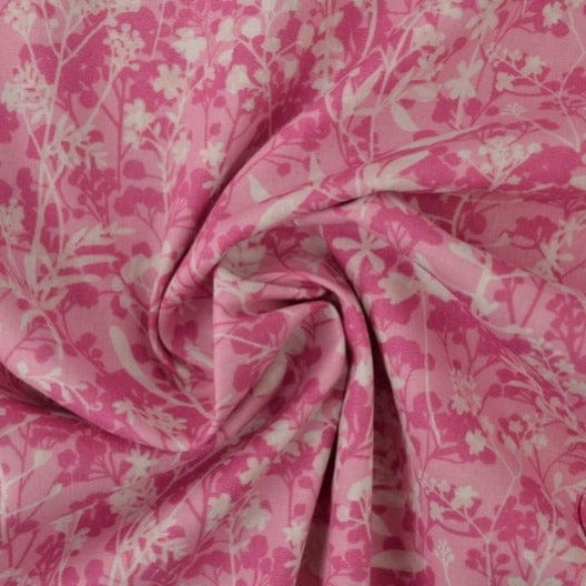 LYSERØD BOMULDSPOPLIN M. ENGBLOMSTER