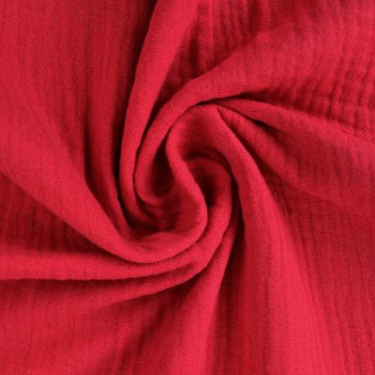 Double gauze musslin i bomull består av två tunna, lätt rynkade lager som är sammanvävda till ett mjukt och luftigt tyg. Kvaliteten är populär till babykläder, barnkläder, filtar, nappfiltar, sängkläder och lediga plagg som blusar och sommarklänningar. Den naturliga skrynkelstrukturen gör att tyget ser avslappnat ut och inte behöver strykas för att upplevas snyggt.