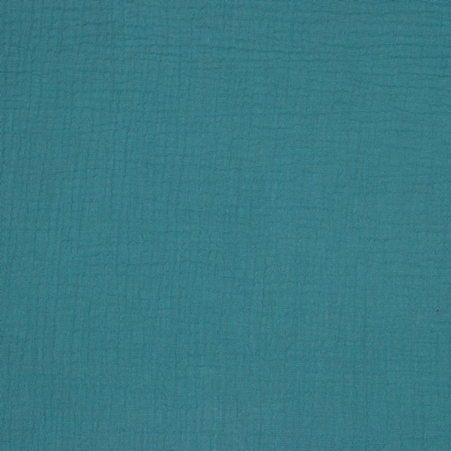 Vårt double gauze-tyg består av två lager glest vävd bomullsgas, även kallad muslin. De två lagren muslin är sammanfogade med lätta stygn i ett regelbundet mönster, vilket gör att tyget upplevs som ett enda lager och mindre transparent.