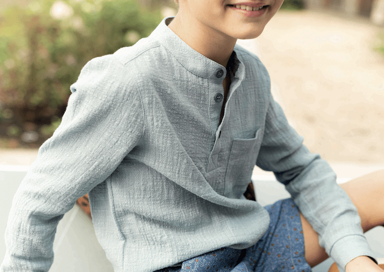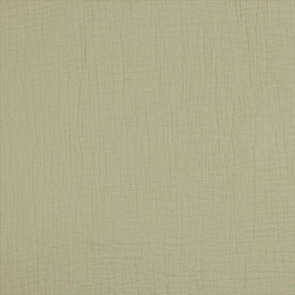 Vårt double gauze-tyg består av två lager glest vävd bomullsgas, även kallad muslin. De två lagren muslin är sammanfogade med lätta stygn i ett regelbundet mönster, vilket gör att tyget upplevs som ett enda lager och mindre transparent.