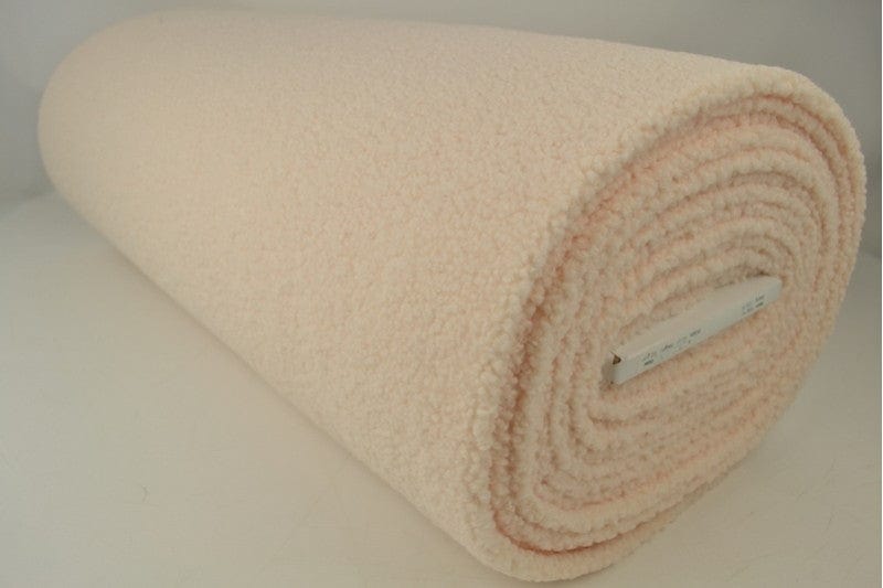 Teddy stof er blødt, fluffy og har en overflade der minder om fåreskind.