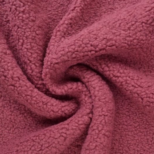 MØRK LYSERØD TEDDY STOF MED STRÆK – BLØDT & VARMEISOLERENDE