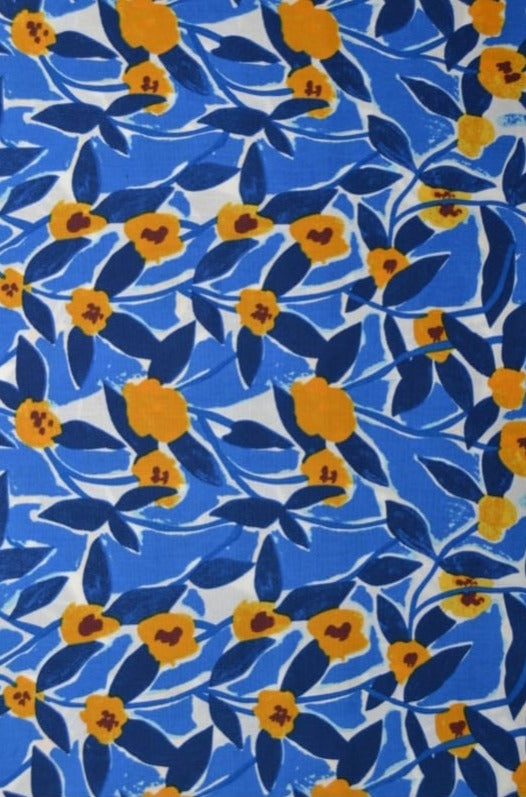G&M Bomuldspoplin BLÅ BOMULDSPOPLIN M. BLOMSTERRANKER