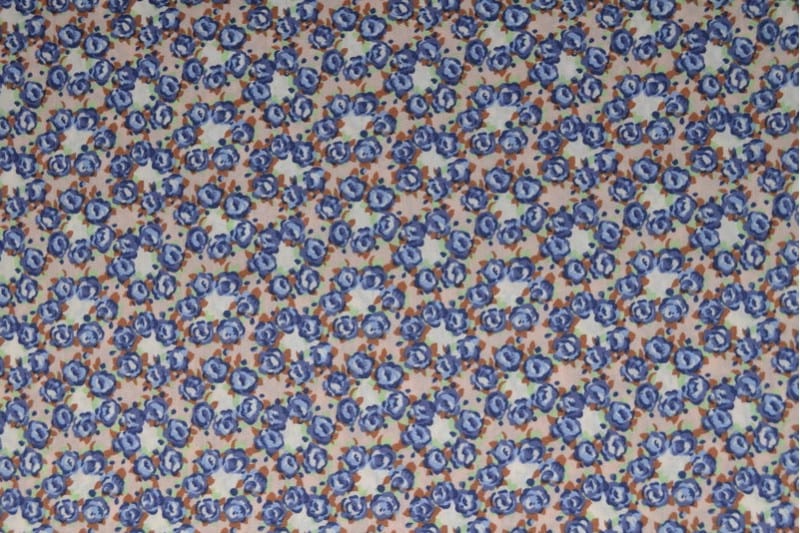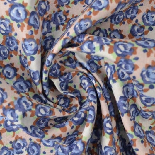 BOMULDSPOPLIN M. BLÅ ROSENKRANSE