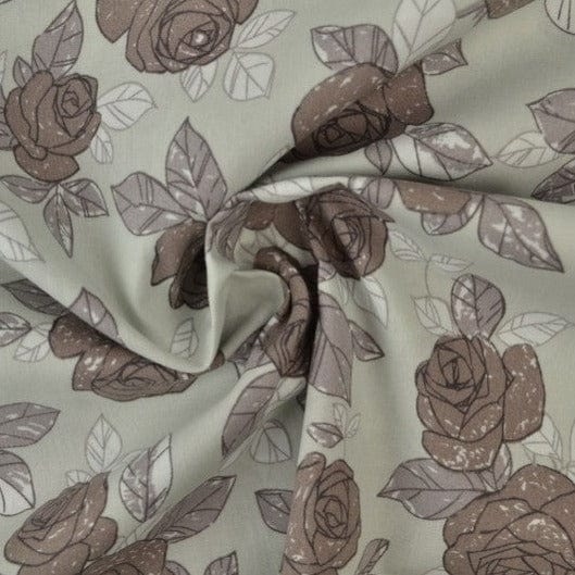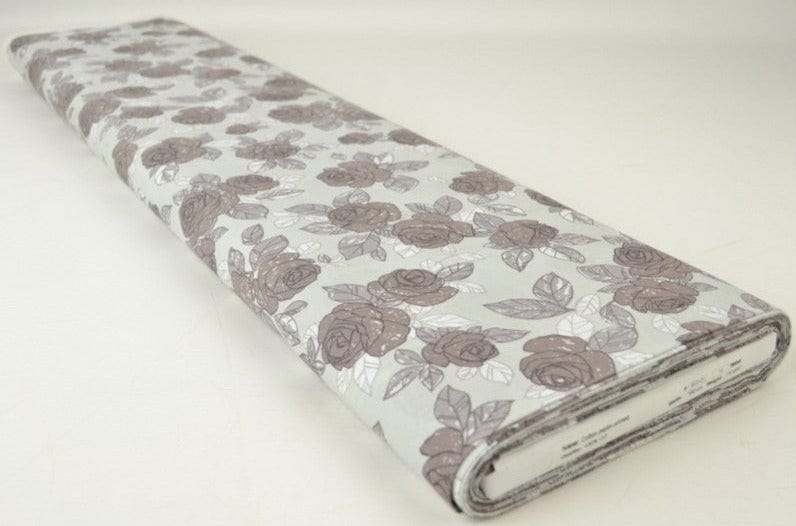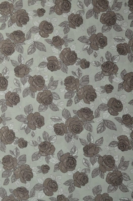 BOMULDSPOPLIN M. SKITSEREDE GRÅ ROSER
