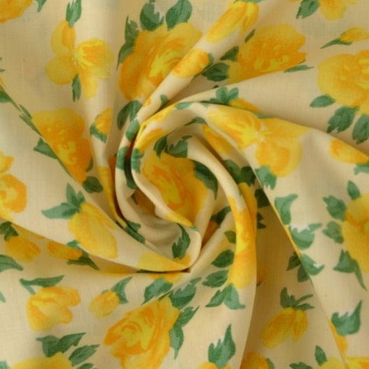 LYSEGUL BOMULDSPOPLIN M. GULE PÆONER
