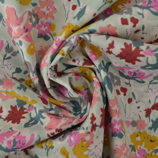 MINT BOMULDSPOPLIN M. VIOLER OG PETUNIER