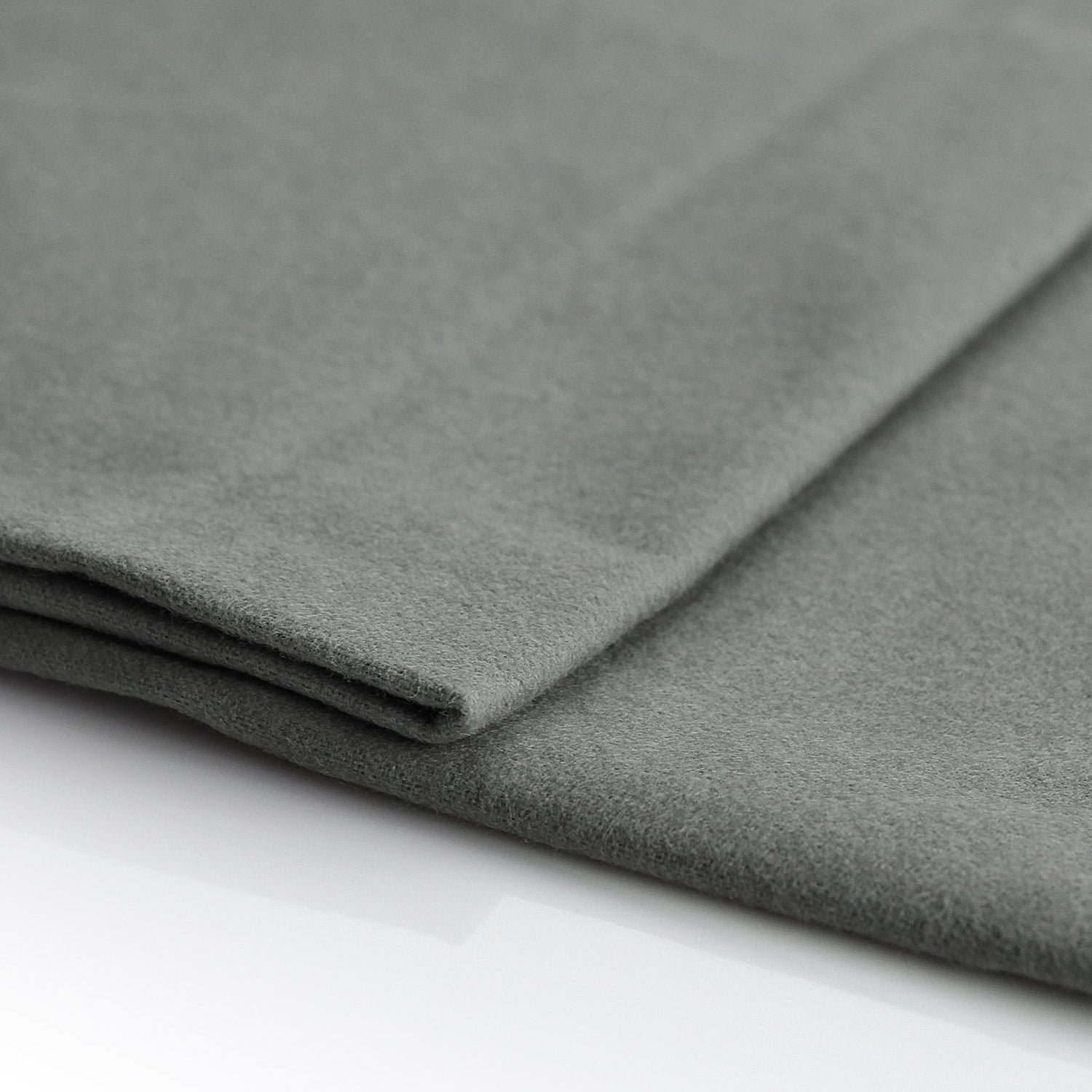 Denna moltonvariant är ett högkvalitetsmaterial av 100 % bomull, vävd i satinbindning på ena sidan och ruggad på baksidan. Kombinationen ger en tät, relativt tung kvalitet med mjuk yta och god täckförmåga.