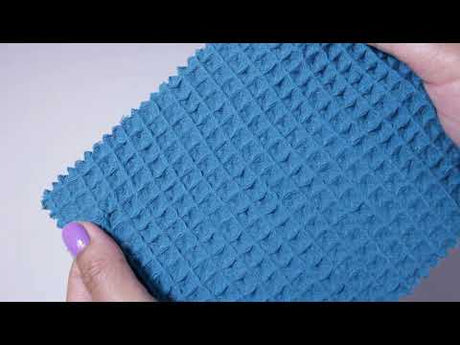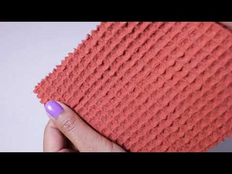 Våffeltyg i bomull är ett vävt tyg med karakteristisk våffelstruktur som ger god uppsugningsförmåga och mjuk volym. Tyget används till handdukar, badrockar, disktrasor, kökstextilier, babyfiltar och lättare plädar där du vill kombinera funktion och taktil känsla.