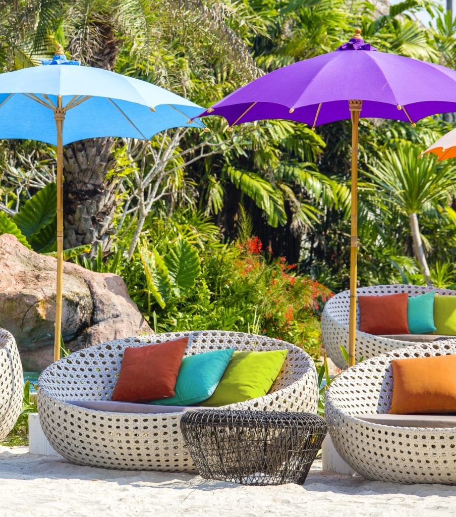 Kanaria är designat för att klara väder och vind. Tyget har en vattenavvisande ytbehandling som gör att spill och regn i hög grad stannar på ytan i stället för att tränga in i fibrerna. Färgerna är anpassade för utomhusmiljö med god ljusäkthet, vilket minskar risken för blekning vid normal exponering för sol.