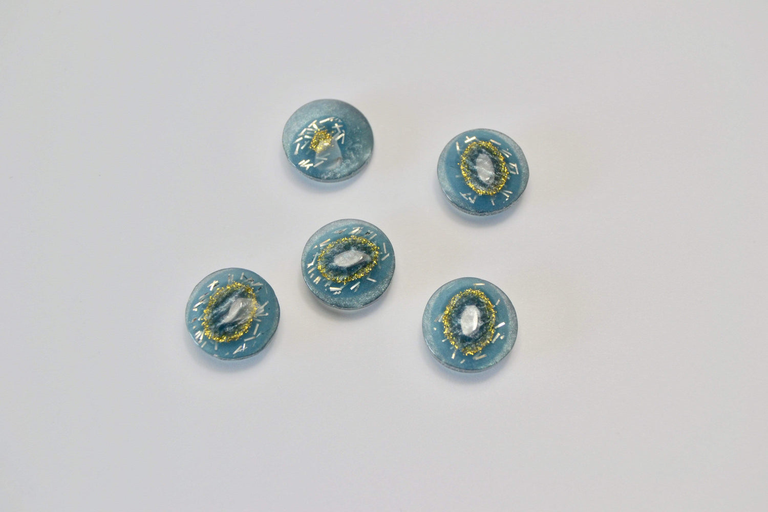 BLÅ KNAPPER MED GULD GLIMMER 5 STK.