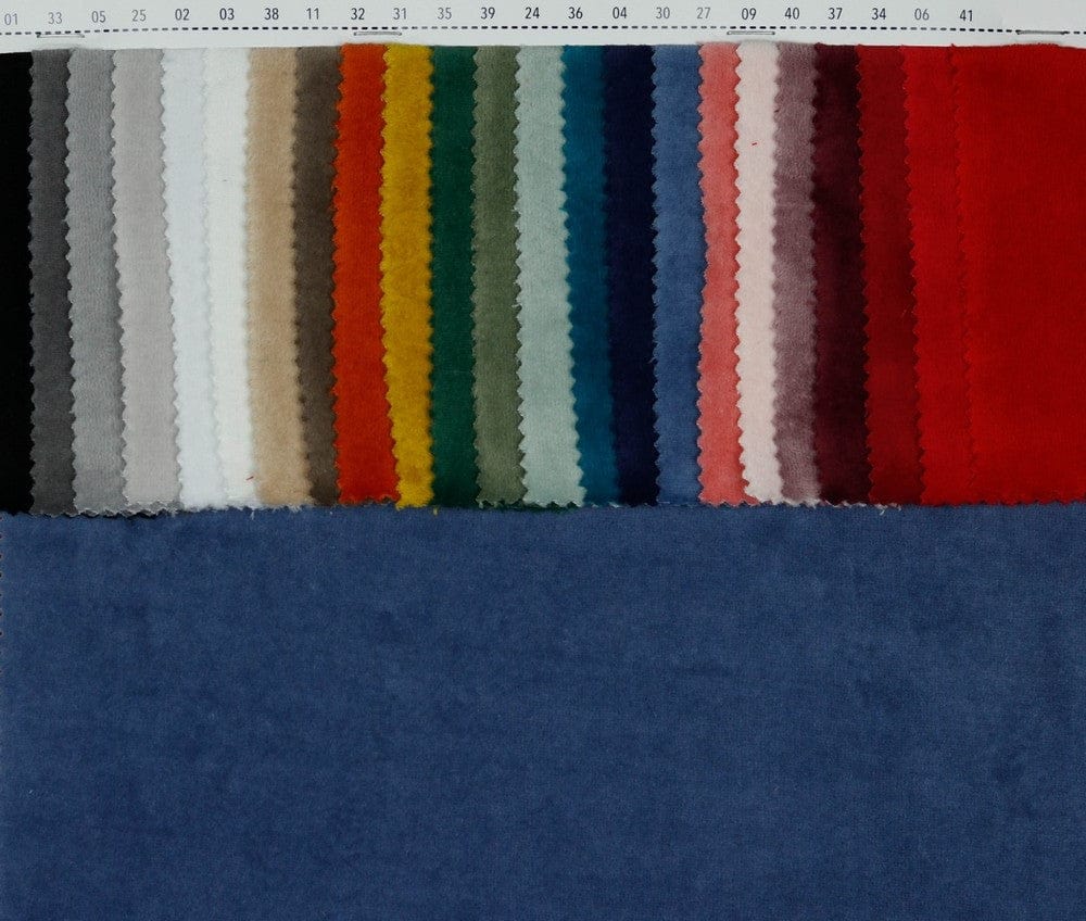 Blød og lækker strikket velour bestående af bomuld og polyester, der er ideel til tætsiddende beklædningsdele. Dette eksklusive, dejlige stof kan bruges til mange ting, f.eks jakker, bukser, huer, hjemmedragter og babytøj. Velouren har et fint fald, og dens struktur giver det smukkeste farvespil. De stærke farver og stoffets bløde kvalitet gør det også perfekt egnet til tæpper og puder.