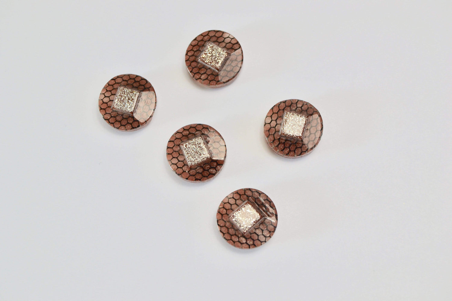 BRUNE KNAPPER MED SØLV GLIMMER 5 STK.