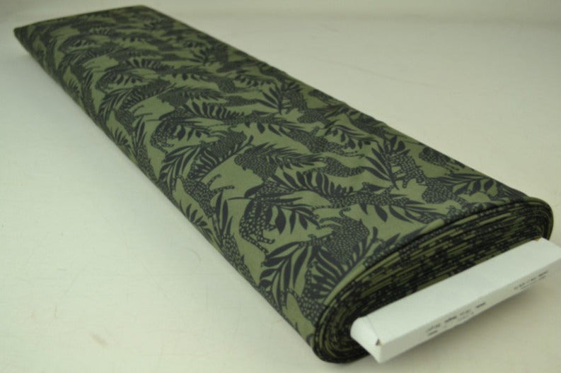 GRÖN LYCRA – LEOPARD- OCH PALMMÖNSTER, 4-VÄGS STRETCH & SNABBTORKANDE