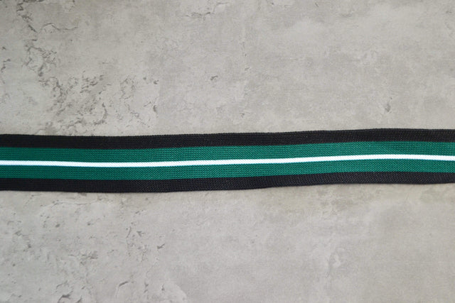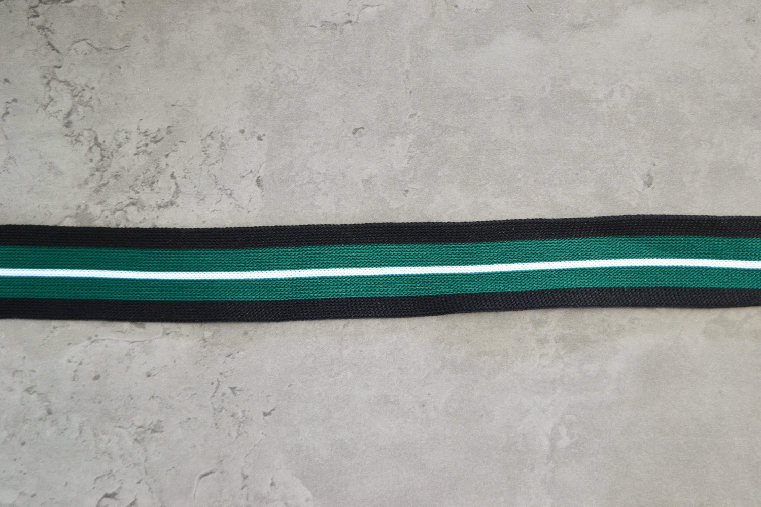 Bånd i grøn og sort med en hvid stribe i midten. Båndet har en bredde på 30 mm.