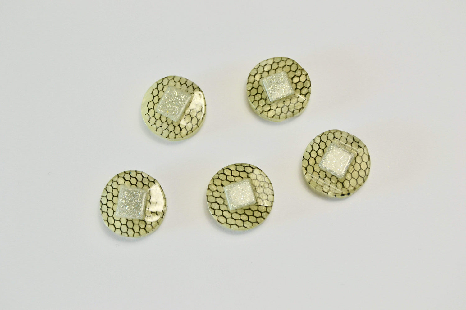 GRØNNE KNAPPER MED SØLV GLIMMER 5 STK.