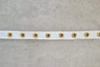 Hvid bånd dekoreret med guld ringe i midten. Båndet har en bredde på 20 mm.