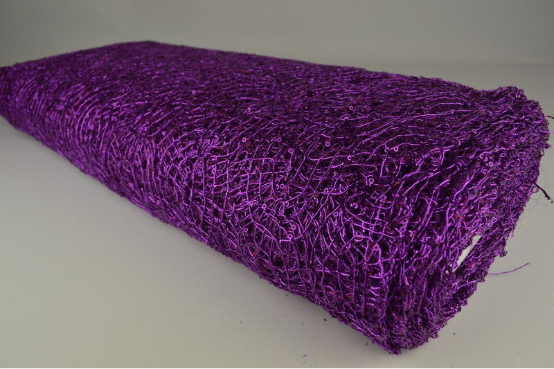 LILA NÄTPALJETT TYG – SMÅ 2–3 MM PALJETTER, UTAN STRETCH