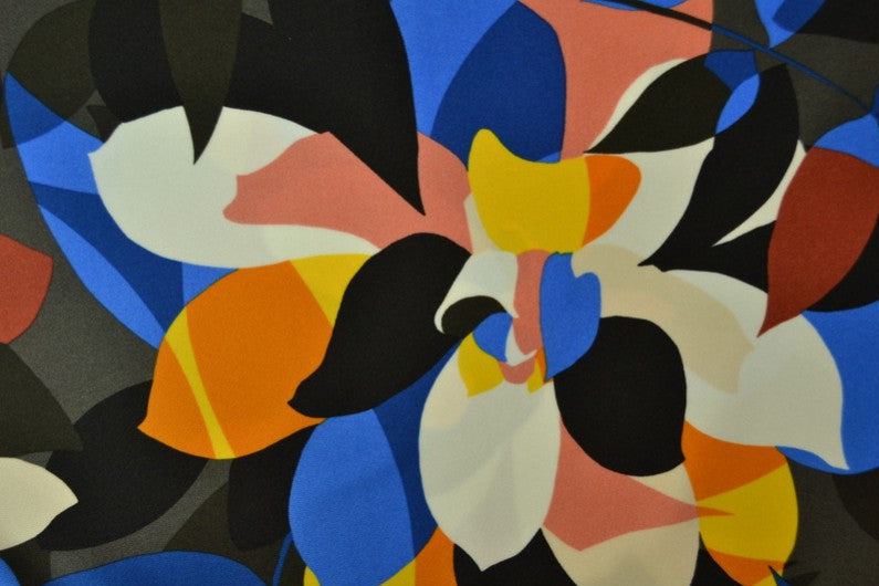 LYCRA – STILISERET BLOMSTERPRINT (FLERFARVET), 4-VEJS STRÆK & HURTIGTØRRENDE