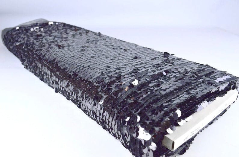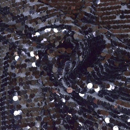 MØRKEGRÅ PAILLETSTOF – STORE 8 MM PAILLETTER & ENVEJS STRÆK