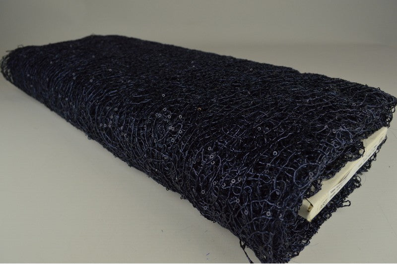 NAVY NÄTPALJETT TYG – SMÅ 2–3 MM PALJETTER, UTAN STRETCH