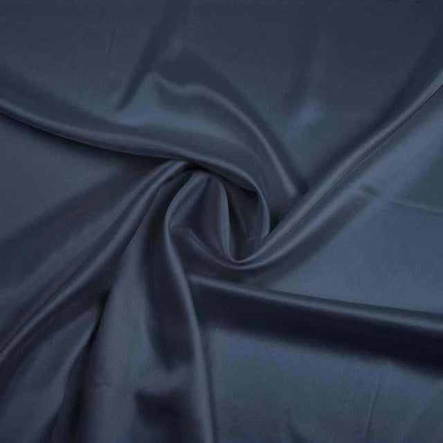 BLÅ SILKE SATIN MED LET STRÆK – BLØD GLAT OVERFLADE
