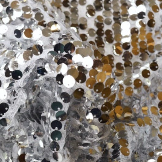 SØLV PAILLETSTOF – STORE 8 MM PAILLETTER & ENVEJS STRÆK