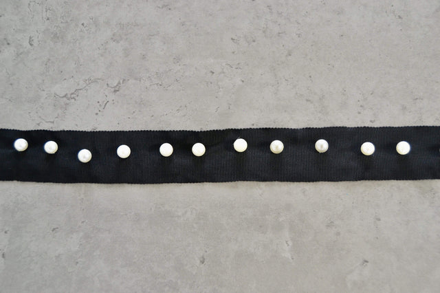 SORT BÅND MED HVIDE PERLER 30MM