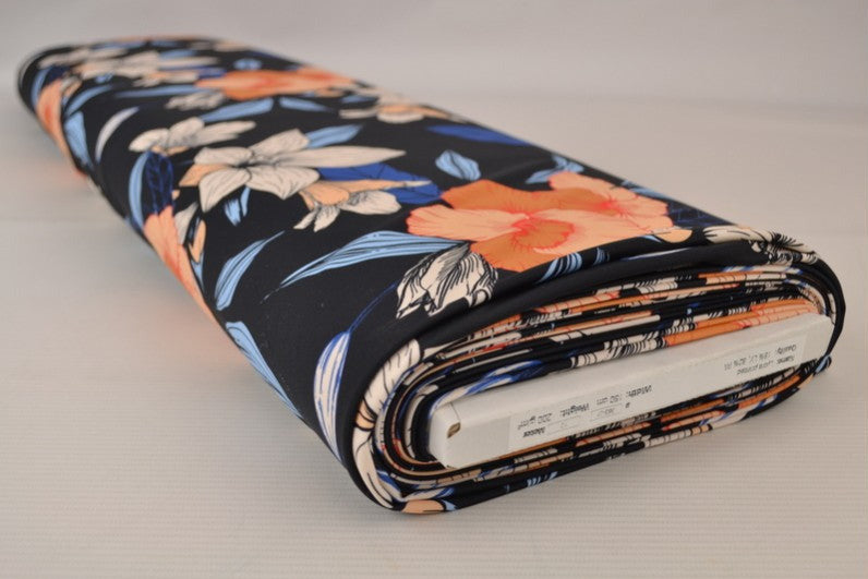 SORT LYCRA – TROPISK BLOMSTERPRINT, 4-VEJS STRÆK & HURTIGTØRRENDE