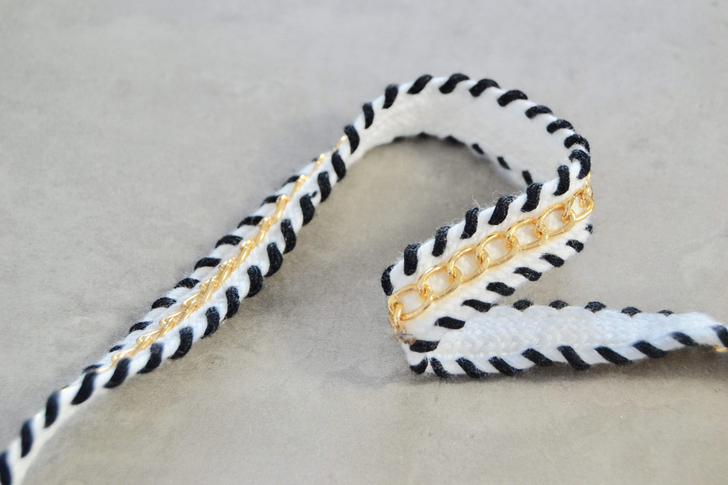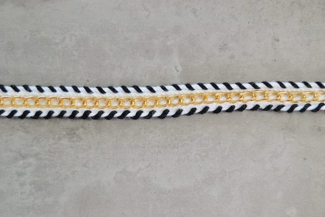 SORT OG HVID BÅND MED GULD KÆDE 20MM