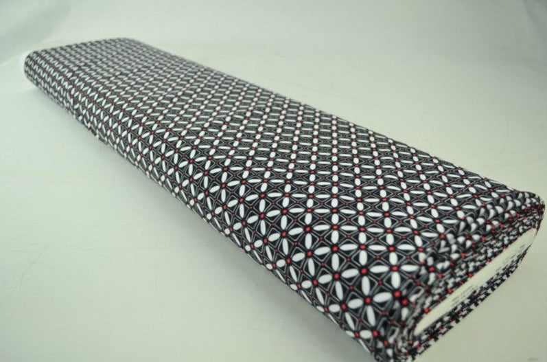 SVART/RÖD LYCRA – GEOMETRISKT KAKELMÖNSTER, 4-VÄGS STRETCH & SNABBTORKANDE