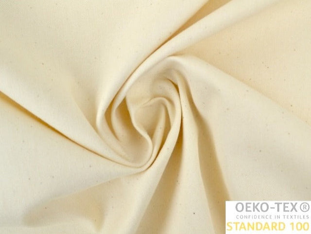 Et enkelt, lærredsvævet bomuldsstof uden stræk som ligger lige i overgangen mellem let og middel vægtklasse. Dette bomuldsstof er ubleget og har derfor stadig sin naturlige farve. Der kan med naturfibre opstå variationer eller ujævnheder i farven, men mange synes faktisk at det lidt upolerede udtryk har en vis charme. Brugen af blegemiddel har negative konsekvenser for mijøet og kan være hårdt mod huden, især for allergikere eller folk med følsom hud - derfor kan det være en fordel for den miljøbevidste eller særligt følsomme forbruger at vælge ubleget bomuld.